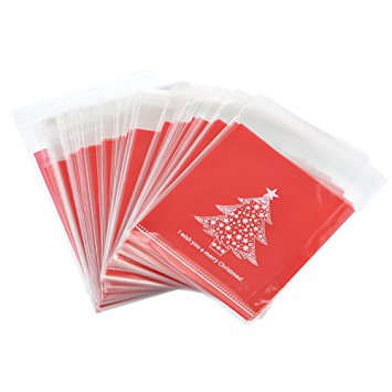 Souarts Bodenbeutel 100St Keks tüten Gebäckstüten Klebemittel Weihnachtstüten Geschenktüte für Süße Bonbons Schleife Weiß -100%